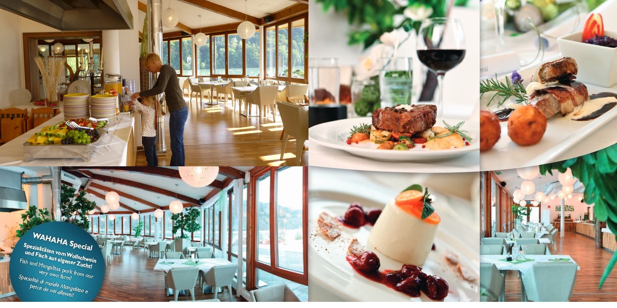 Das Restaurant des „WAHAHA-Paradise“ ist liebevoll eingerichtet, in anspruchsvollem Ambiente mit Panoramablick in die umliegende Natur.