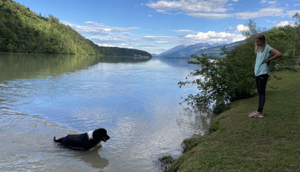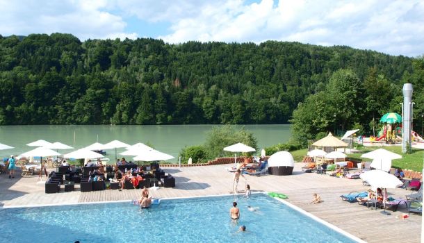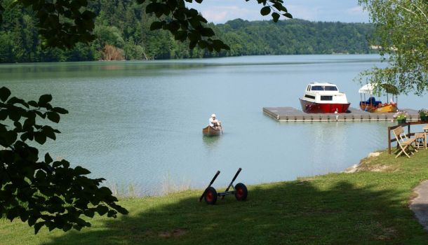 liegt ca. 2 km außerhalb des Ortes Feistritz im Rosental, unmittelbar am herrlichen Draustausee der hier eine Länge von etwa 18 km aufweist.