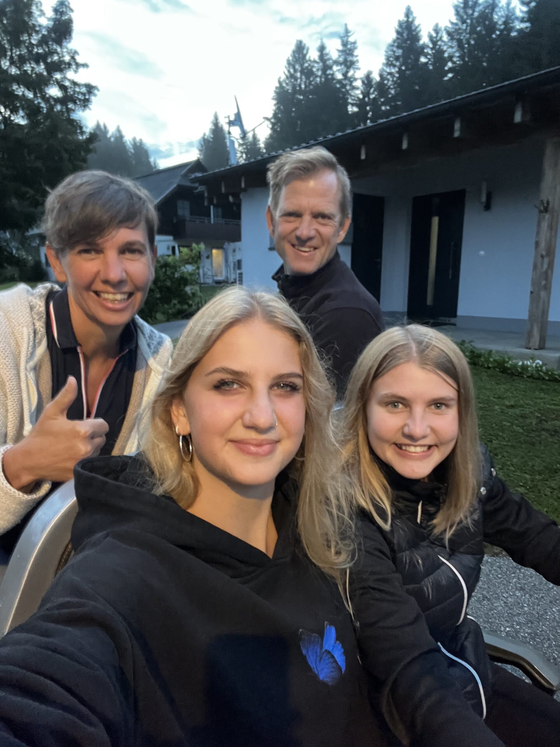 Nicole mit Ehemann Florian, sowie Emily und Marie. Das Bild wurde aufgenommen beim fahren mit unserem Tuktuk im Feriendorf.
